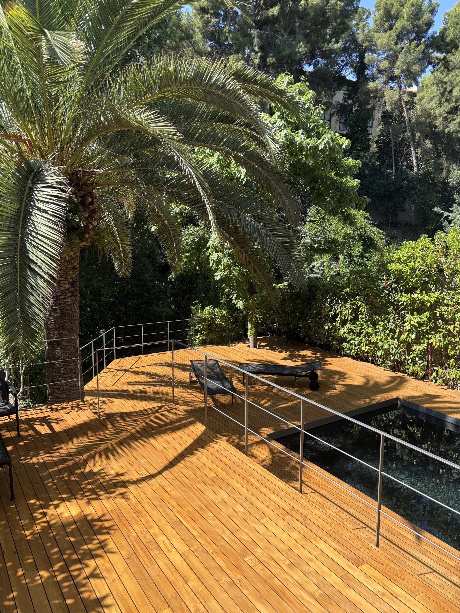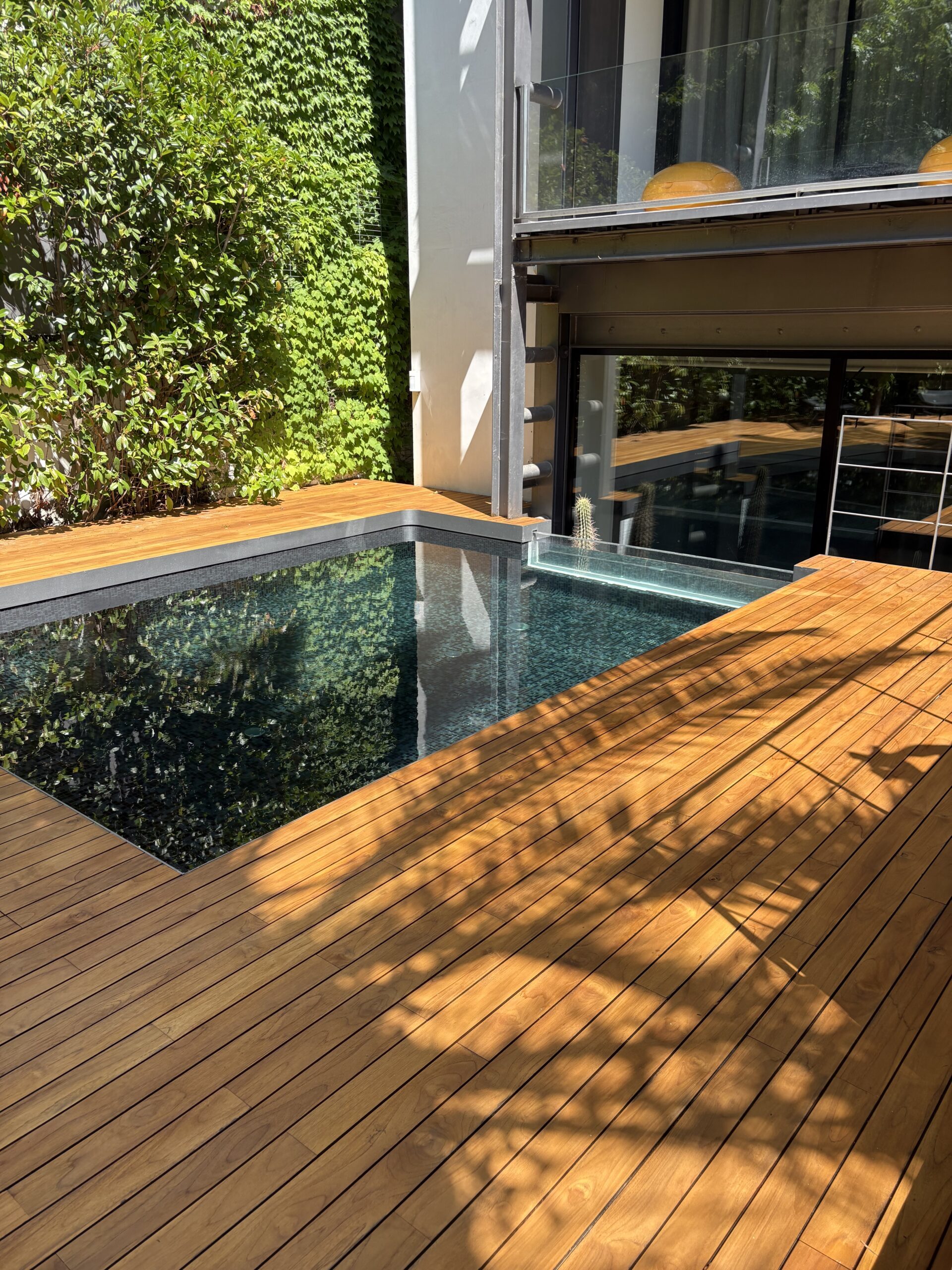A rich, dark-toned African hardwood prized for its exceptional density and natural durability. Ideal for contemporary outdoor spaces that demand both strength and a bold visual character.